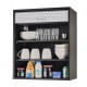 Meuble Elément haut de Cuisine coloris Noir et Rideau Imprimé Hexagones à poser sur le plan de travail ou à suspendre