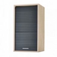 Meuble Elément Haut de Cuisine. Coloris Chêne + Rideau Blanc, Alu ou Noir. Largeur 60 cm Hauteur 72 cm Profondeur 35 cm. 2 Tablettes. Fermeture par 1 Rideau. A suspendre ou à poser. Meuble éco-conçu. . Meuble Elément Haut de Cuisine....