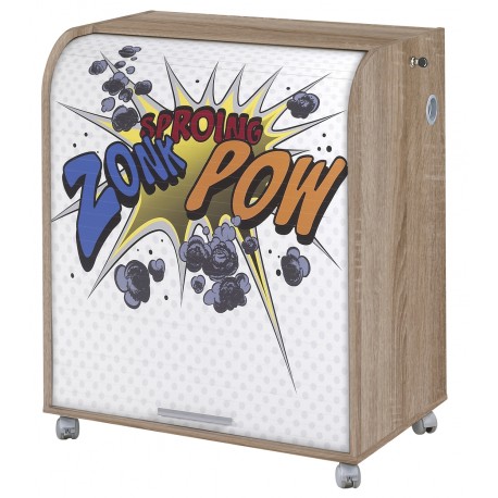 Office secretary desk on casters, with shutter-door, Black, plain or printed